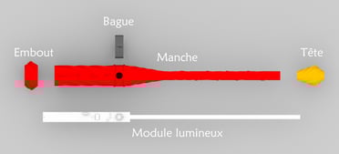 Ensuite, quelques mois plus tard, il pourrait avoir envie de changer de style de baguette. Il pourrait alors conserver le module lumineux qu'il possède déjà et s'équiper du modèle "simple standard" (voir dans la boutique: ici).
